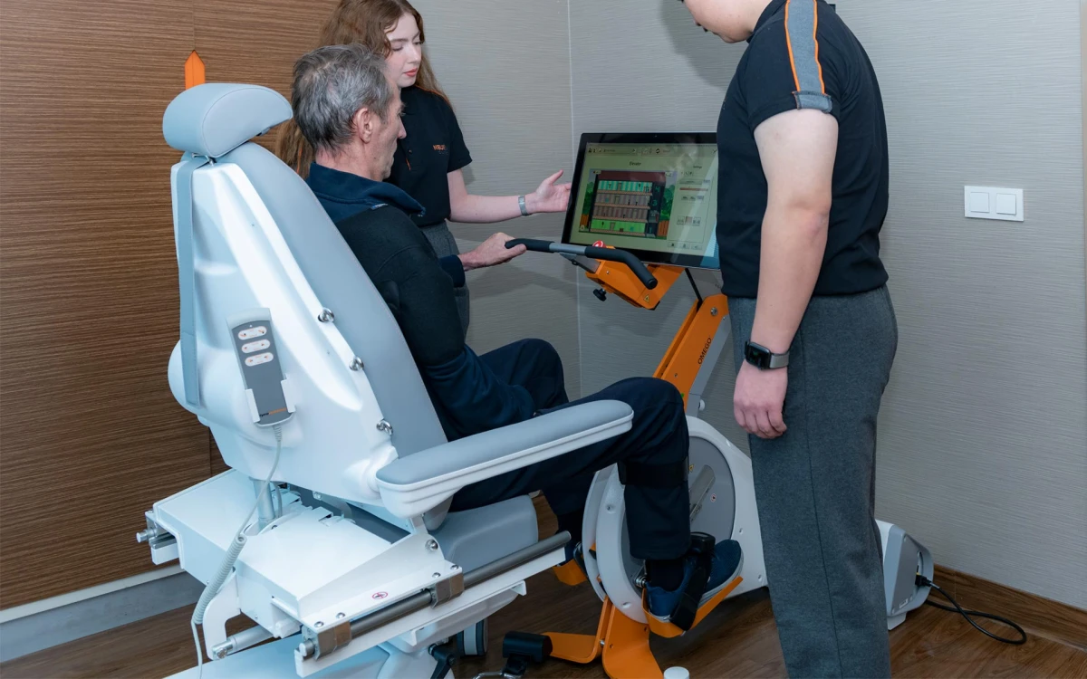 OMEGO'nun sensörleri ve robotikleri, herhangi bir simetri veya his eksikliğini belirlemeye ve alt ekstremitelerin hareketindeki spastisiteyi tespit etmeye yardımcı olur. OMEGO, terapistin hareket eksikliklerini belirlemesini ve ayakta durmayı, dengeyi ve yürümeyi kolaylaştırmak için gereken doğru hareket dizisini eğitmesini sağlar. Cihaz, terapi sonuçlarını en üst düzeye çıkarmak için performans hakkında geri bildirim sağlar.